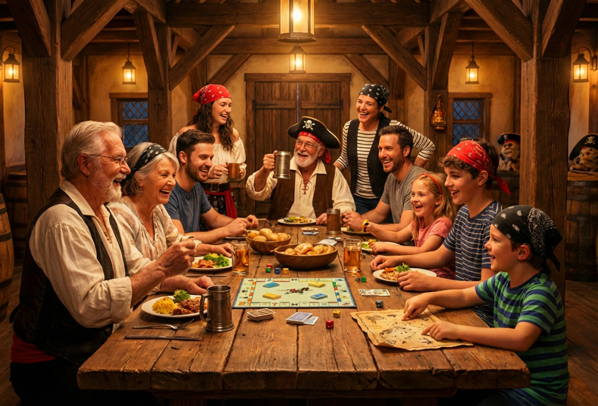 Dans une taverne de pirate, vous pourrez rassembler tout l’équipage pour un vrai moment de partage, de rires et de détente digne d’une grande fête familiale des sept mers !